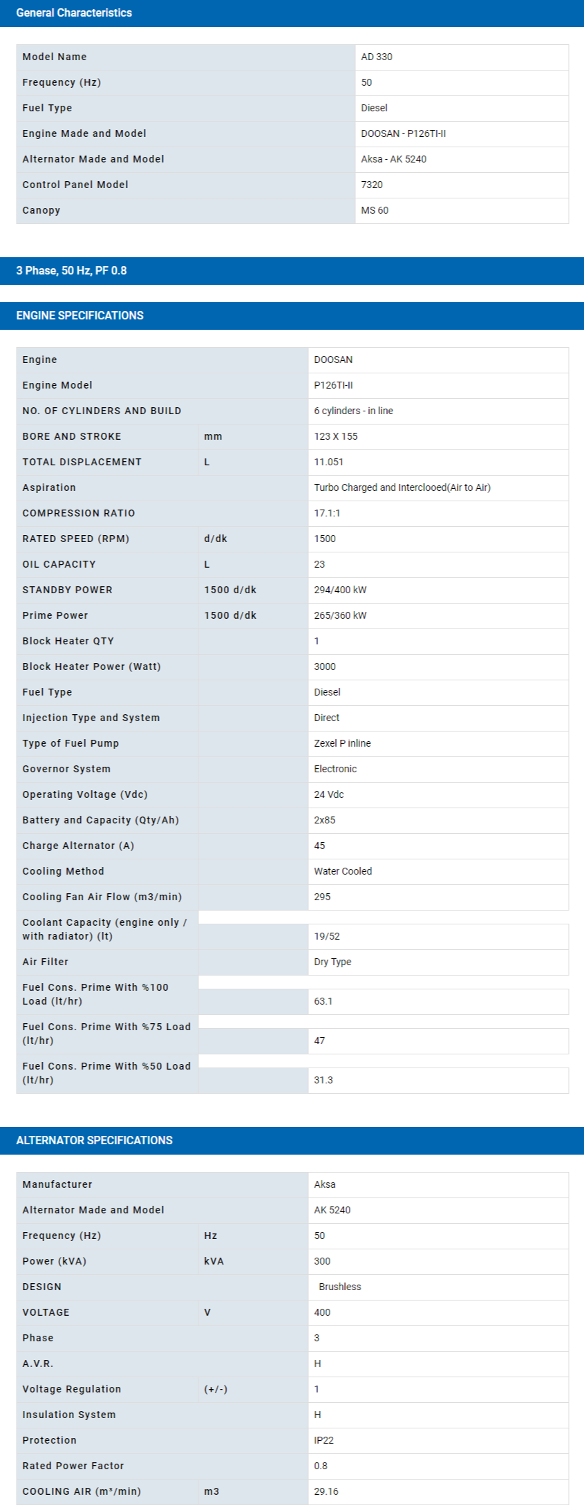 Máy phát điện Aksa động cơ Doosan AD330KVA