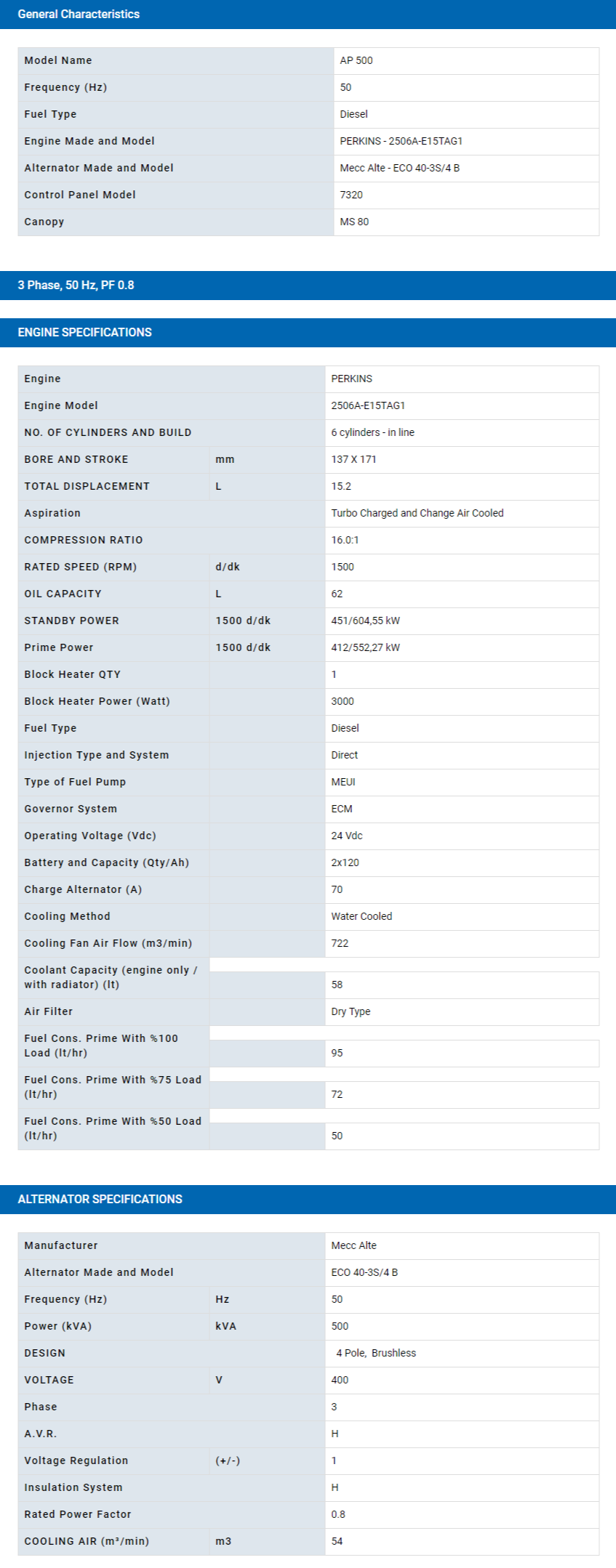 Máy phát điện Aksa động cơ Perkins AP500KVA